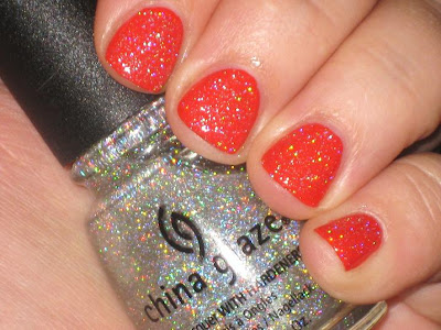 There we go. Just a little blinged up. This manicure lasted for about 4 days, which is usually longer than my attention span lasts for manicures. I got the first chip at the end of day 3, so it lasted really well. I'm going to keep my eye out for new Illamasqua colors, because I really liked the formula.